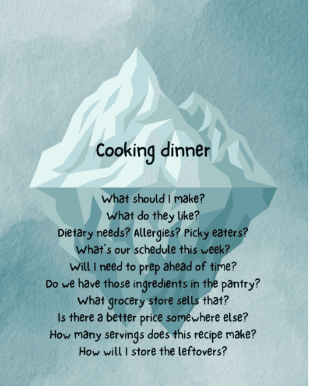 The mental load is like an iceberg. We may be able to plainly see the task at hand with our naked eye, but there is far more labor that lies beneath the surface.